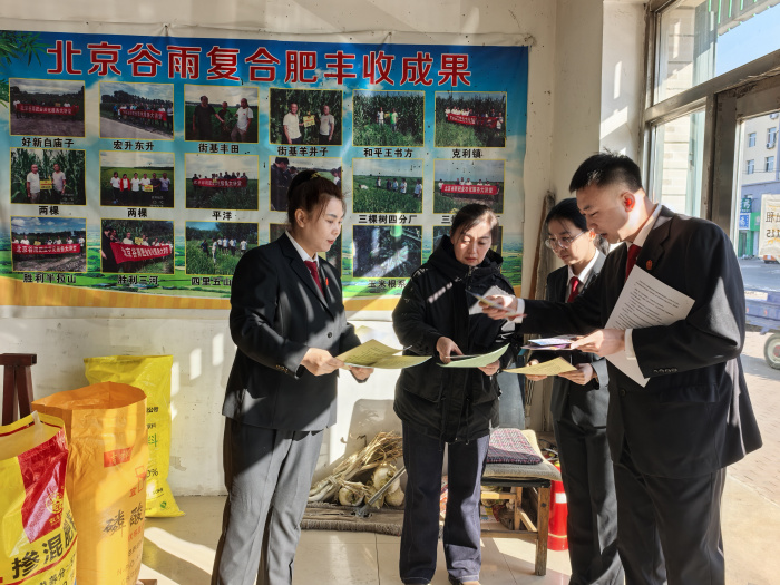 岁启新程春意暖,深耕细作正当时。为切实保障春耕生产顺利开展,净化农资市场秩序,维护广大农民群众合法权益,3月5日,泰来县人民法院民事审判庭干警深入辖区种子、农药、化肥经销门店,开展“护春耕、保安全、促丰收”普法宣传活动。